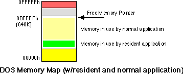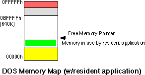 When the user executes a new application, DOS loads it into memory at the new free memory pointer address, protecting the resident program in memory: