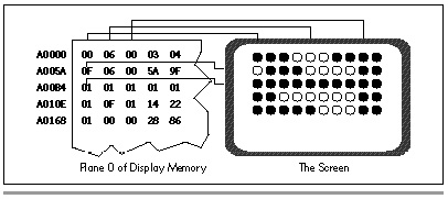The organization of display memory in 360×480 256-color mode is almost exactly the same as in 320×400 256-color mode, which we covered in detail in the last chapter. However, as a quick refresher, each byte of display memory controls one 256-color pixel, just as in mode 13H. The VGA is reprogrammed by the mode set so that adjacent pixels lie in adjacent planes of display memory. Look back to Figure 31.1 in the last chapter to see the organization of the first few pixels on the screen; the bytes controlling those pixels run cross-plane, advancing to the next address only every fourth pixel. The address of the pixel at screen coordinate (x,y) is