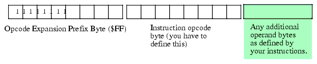 11We could also have used values $F7, $EF, and $E7 since they also correspond to an attempt to store a register into a constant. However, $FF is easier to decode. On the other hand, if you need even more prefix bytes for instruction expansion, you can use these three values as well.