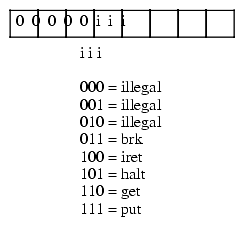 The remaining instructions do not require any operands, they are HALT and BRK. HALT terminates program execution and BRK stops the program in a state that it can be restarted.