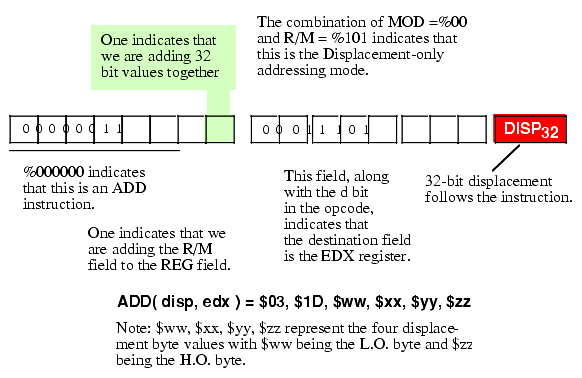 Figure 5.20 Encoding the ADD( disp, edx ); Instruction