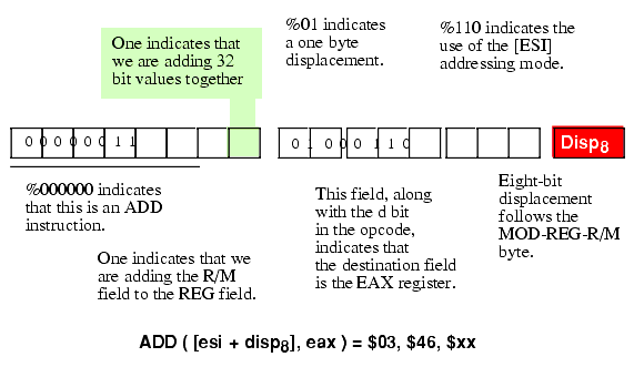 Figure 5.22 Encoding the ADD( [esi+disp8], eax ); Instruction