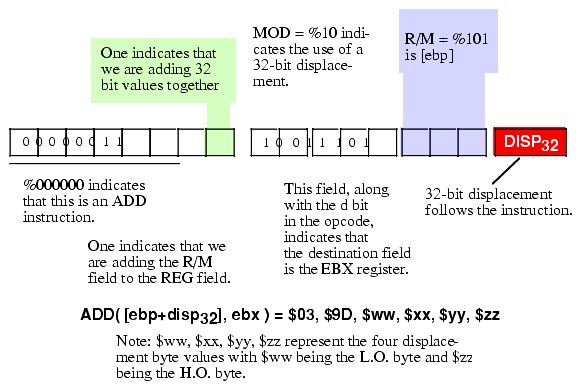 Figure 5.23 Encoding the ADD ( [ebp+disp32], ebx); Instruction