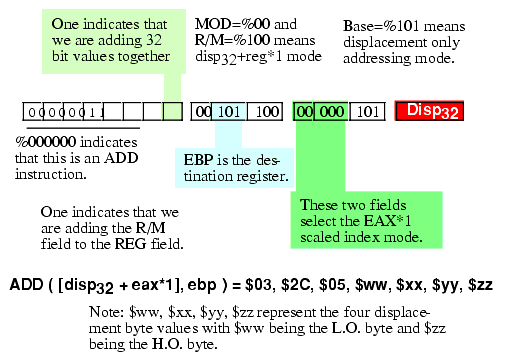 Figure 5.24 Encoding the ADD( [disp32 +eax*1], ebp ); Instruction