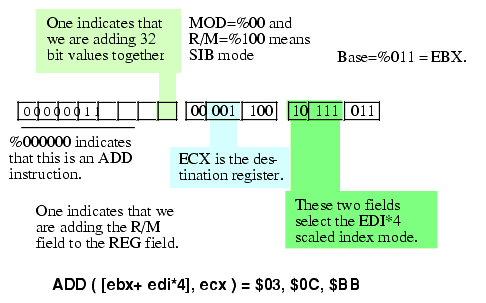 Figure 5.25 Encoding the ADD( [ebx + edi * 4], ecx ); Instruction