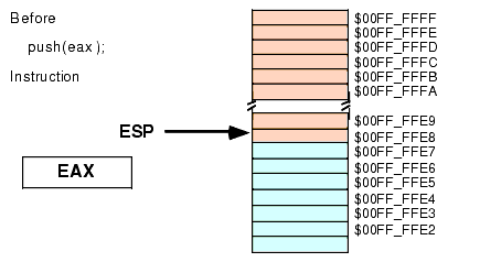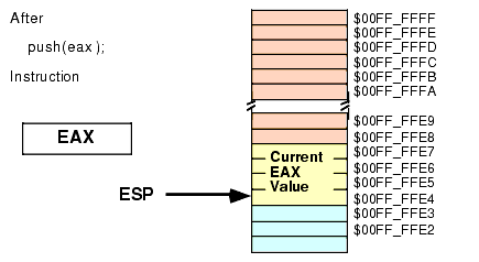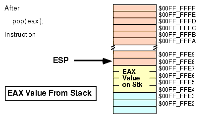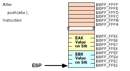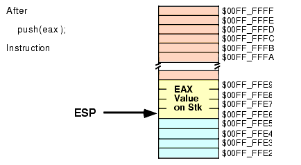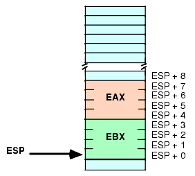- Warning: Don't forget that the offsets of values from ESP into the stack change every time you push or pop data. Abusing this feature can create code that is hard to modify; if you use this feature throughout your code, it will make it difficult to push and pop other data items between the point you first push data onto the stack and the point you decide to access that data again using the "[ESP + offset]" memory addressing mode.