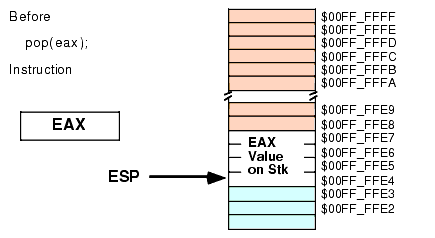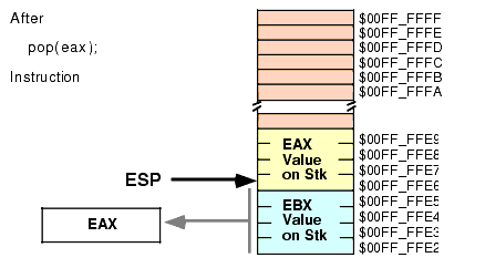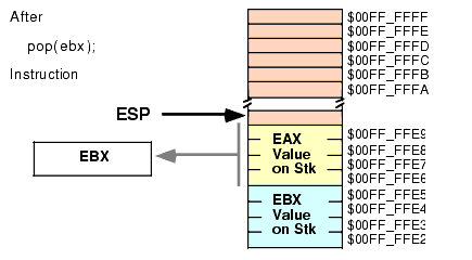 The previous section pointed out how to remove data from the stack by adding a constant to the ESP register. That code example could probably be written more safely as:
