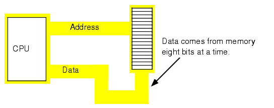 A processor with an eight-bit bus (like the old 8088 CPU) can transfer eight bits of data at a time. Since each memory address corresponds to an eight bit byte, this turns out to be the most convenient arrangement (from the hardware perspective), see Figure 1.5.