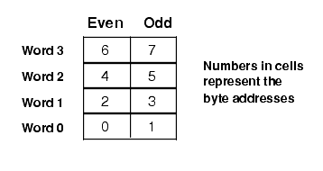 The 16 bit members of the 80x86 family can load a word from any arbitrary address. As mentioned earlier, the processor fetches the L.O. byte of the value from the address specified and the H.O. byte from the next consecutive address. This creates a subtle problem if you look closely at the diagram above. What happens when you access a word on an odd address? Suppose you want to read a word from location 125. Okay, the L.O. byte of the word comes from location 125 and the H.O. word comes from location 126. What's the big deal? It turns out that there are two problems with this approach.
