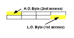 The second problem is even more obscure. When accessing words, we're really accessing two separate bytes, each of which has its own byte address. So the question arises, "What address appears on the address bus?" The 16 bit 80x86 CPUs always place even addresses on the bus. Even bytes always appear on data lines D0-D7 and the odd bytes always appear on data lines D8-D15. If you access a word at an even address, the CPU can bring in the entire 16 bit chunk in one memory operation. Likewise, if you access a single byte, the CPU activates the appropriate bank (using a "byte enable" control line). If the byte appeared at an odd address, the CPU will automatically move it from the H.O. byte on the bus to the L.O. byte.