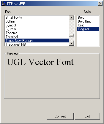 Converting a TTF font to UGL's UVF format
