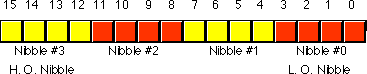 Naturally, a word may be further broken down into four nibbles as shown below: