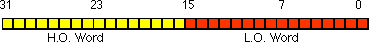 A double word is exactly what its name implies, a pair of words. Therefore, a double word quantity is 32 bits long as shown below: