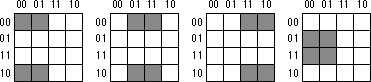 Warning: Take a careful look at these truth tables. They do not use the same forms appearing earlier in this chapter. In particular, the progression of the values is 00, 01, 11, 10, not 00, 01, 10, 11. This is very important! If you organize the truth tables in a binary sequence, the mapping optimization method will not work properly. We will call this a truth map to distinguish it from the standard truth table.