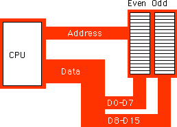 The 8086, 80186, 80286, and 80386sx processors have a 16 bit data bus. This allows these processors to access twice as much memory in the same amount of time as their eight bit brethren. These processors organize memory into two banks: an "even" bank and an "odd" bank: