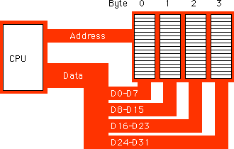 The 32 bit 80x86 processors (the 80386, 80486, and Pentium Overdrive) use four banks of memory connected to the 32 bit data bus: