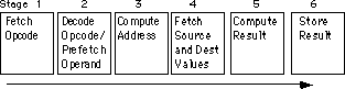 If you design a separate piece of hardware for each stage in the pipeline above, almost all these steps can take place in parallel. Of course, you cannot fetch and decode the opcode for any one instruction at the same time, but you can fetch one opcode while decoding the previous instruction. If you have an n-stage pipeline, you will usually have n instructions executing concurrently. The 8486 processor has a six stage pipeline, so it overlaps the execution of six separate instructions.