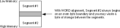 If segments one and two are declared as below, and segment #2 is word aligned, the segments appear in memory as shown below: