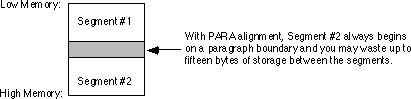 For example, if segments one and two are declared as below, and segment #2 is paragraph aligned, DOS will store the segments in memory as shown below: