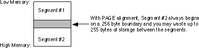 Page boundary alignment forces the segment to begin at the next address that is an even multiple of 256 bytes. Certain data buffers may require alignment on 256 (or 512) byte boundaries. The page alignment option can be useful in this situation.