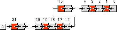 4) Bits 16 through 30 must be shifted into the next higher bit.